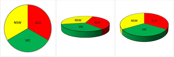 Puede empeorar aún más si tomamos gráficos circulares y los hacemos tridimensionales. Esto puede conducir a tergiversaciones atroces de los datos.
