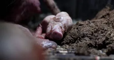 - Cerdos mantenidos entre sangre, heces y órganos.