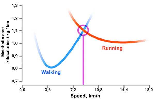 Además, tenemos una percepción intuitiva muy precisa de la eficiencia energética de un estilo particular de movimiento. Si estamos en una cinta de correr cuya velocidad aumenta gradualmente, el momento en el que pasamos espontáneamente de caminar a correr coincide con el momento en el que se produce el cambio de velocidad. Momento en el que caminar consumiría más energía que correr..