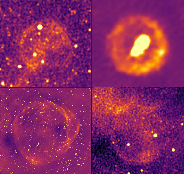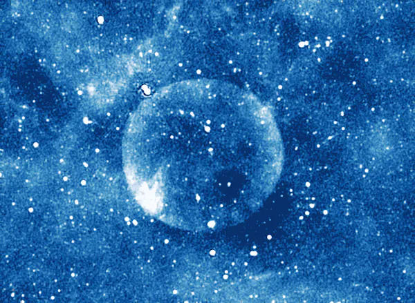 Sus ondas de choque en expansión barren el material en una esfera en expansión, formando hermosas características circulares.