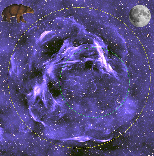 Este remanente es uno de los objetos más grandes del cielo, que aparece aproximadamente seis veces más grande que la luna. De ahí el nombre: el diprotodón animal, una de la megafauna más famosa de Australiaun wombat gigante que vivía hace unos 25,000 años.